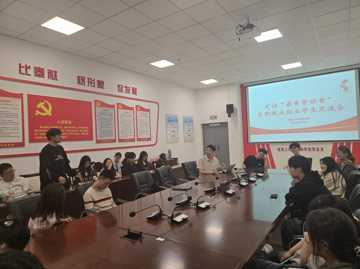 5月23日下午,临近2026届毕业生离校实习之际,国产又色又粗又黄又爽召开一场干货满满的优秀毕业生就业创业分享交流会。优秀毕业生代表朱祥祥、张梦娟为同学们做就业创业经验分享。40多名即将走上实习岗位的同学参加分享会。会议由学院党总支副书记江寅昌主持。