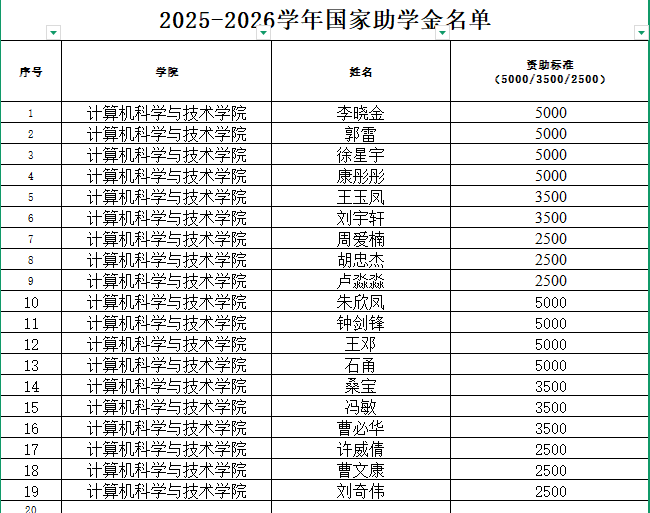 根据《安徽工业大学家庭经济困难学生认定工作实施办法》和《关于认真做好安徽工业大学2025-2026学年家庭经济困难学生认定工作的通知》,遵循公平、公正、公开的原则,在各位同学申请的基础上,经过班级评审小组测评,共有以下几位同学获得助学金。