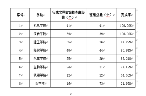 根据《关于开展2020-2021学年第二学期文明宿舍建设的通知》要求,现对2021年3月15日至2021年4月15日文明宿舍检查开展情况进行通报,各学院开展情况请详看下列附件。