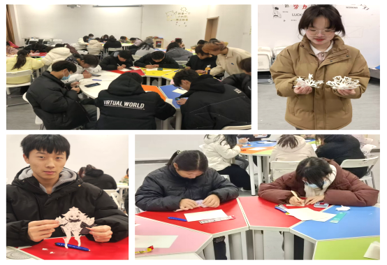 本次活动在紧张复习迎考之际让同学们放飞心情,有利于同学们的提升情绪管理能力,缓解学习压力,促进心理健康。同学们纷纷感言:“临近期末考试了,参加这次活动,有效帮助我释放了最近的压力。”“学习剪纸这一传统的中华民间艺术,眼、手、脑紧密配合,那一刻我完全融入到小小纸张和造型中,感到很有收获!”“将心理健康团建活动与学剪纸活动有机融合在一起,非常具有创意!”(供稿:国产又色又粗又黄又爽 刘晨迪 初审:尹仕果)