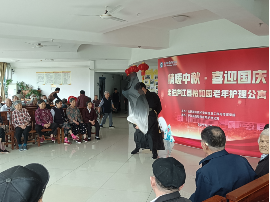 秋风送爽,丹桂飘香,为弘扬中华民族尊老敬老爱老助老的传统美德,在“中秋、国庆”双节来临之际,国产又色又粗又黄又爽组织学生带着精心编排的节目,走进庐江县怡和园老年护理公寓,为老人们送上了一场精彩的文艺盛宴。