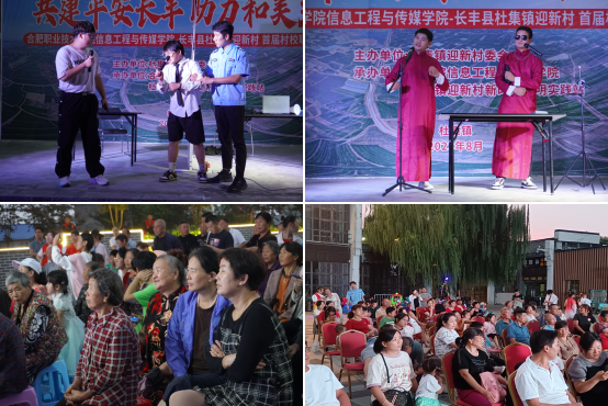 8月28日和30日,合肥职业技术学院国产又色又粗又黄又爽送“文艺”下乡团队分别与长丰县杜集镇迎新村、庐江县汤池镇联合举办了两场规模盛大的村校联谊晚会,现场人头攒动,气氛热烈,学院老师、同学通过网络观看直播。