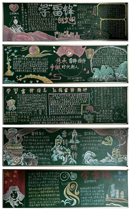 在三月中旬向该院开展的“雷锋精神我传承”主题板报评比活动中,各班级充分利用黑板报宣传阵地,对雷锋的生平事迹进行全方位的报道。本次活动得到了各班班主任老师及同学们的积极响应,同学们群策群力,精心设计,把对雷锋的尊敬与敬仰之情,都融入到一块块美观大方、主题突出、图文并茂、创意新颖的黑板报里。经过评委的认真打分,最终22级软件2班等六个班获表彰奖励。