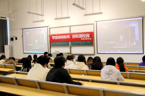 活动正式开始,主持人介绍了本次观影活动的主题和活动要求。活动开始环节是观看《永远的雷锋》纪录片。该片为同学们展现了雷锋短暂而又精彩的一生,雷锋同志的身影在大屏幕上一幕幕闪过,一个个真实的故事生动阐释了雷锋热爱党,热爱祖国,热爱社会主义的崇高信仰和坚定信念以及服务人民,助人为乐的无私奉献精神。