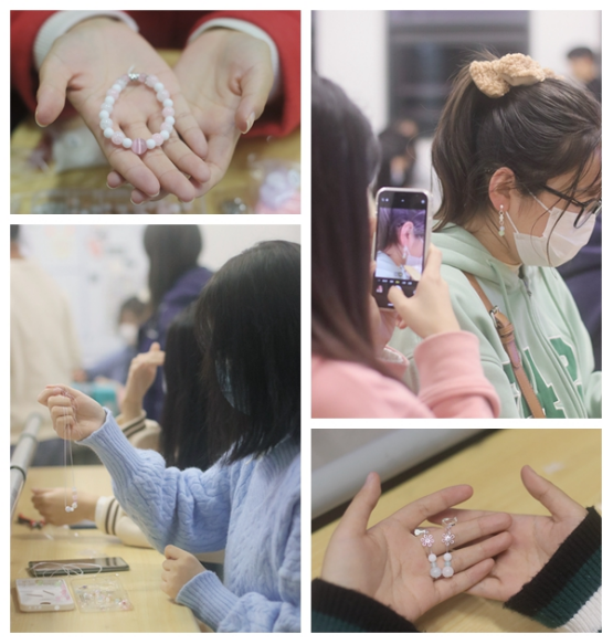 参与耳饰DIY制作的同学们不仅收获一对对亲手制作的独一无二的耳饰,还收获了满满的成就感。此次活动不仅让同学们在学习中激发兴趣,更培养了大学生的创新能力和对美的观察力。