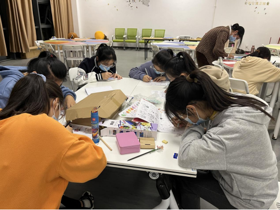 首先,由艺术原创社社长给大家讲解原理以及制作过程,并为大家做示范。接着同学们便开始制作自己心仪的热缩片,有的同学细心勾画出自己的喜爱的图案,有的同学描画出“冰墩墩”“雪融融”等冬奥吉祥物,还有的同学在精心制作表情包图案。