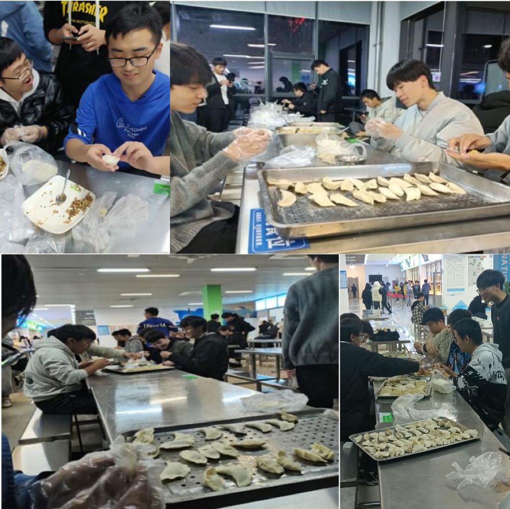 当天的活动现场热闹非凡。同学们提前准备好了面粉、饺子馅等材料以及面板、擀面杖,其乐融融坐在一起和着面、调着陷、包饺子、煮饺子。饺子煮熟了,同学们围坐在一起快乐地品尝自己的劳动成果,一步步动手操作,最后成功吃到了自己亲手包的饺子,同学们都洋溢着幸福的笑容,虽然饺子不是第一次吃,自己亲手做的却格外的香。