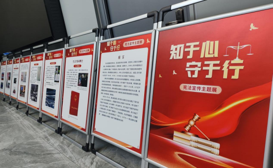 “知于心,守于行”主题展览。今年宪法宣传周主题是“大力弘扬宪法精神,推动进一步全面深化改革”。为进一步弘扬宪法精神,维护宪法权威,增强师生的遵纪守法意识,该院在信息楼北门布置相关宪法知识宣传展板。展览内容涵盖了宪法的主要特征、作用、基本原则等多个方面。