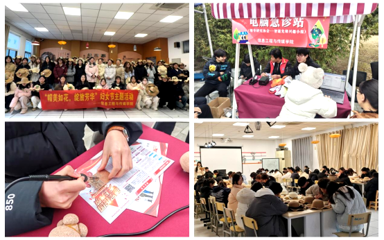 践行“我为师生办实事”理念,“E诊服务,电脑无忧”活动于3月5日在教学北楼东侧小广场开展,学生技术骨干为师生提供软件安装、系统升级等免费服务;同期举办的“帽美如花,绽放芳华”妇女节主题活动,70余名师生通过创意草帽DIY展现女性风采,营造温馨节日氛围。