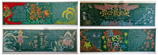 五一 、五四前,学院大一各班级以“劳动立业,青春励志”主题,刊出专题黑板报。同学们以粉笔为媒,将劳动楷模事迹、青年奋斗故事与校园生活场景巧妙融合,通过图文并茂的形式诠释劳动与青春的时代内涵。一幅幅生动的黑板报不仅装点了教室,更让劳动精神和工匠精神浸润学子心田。