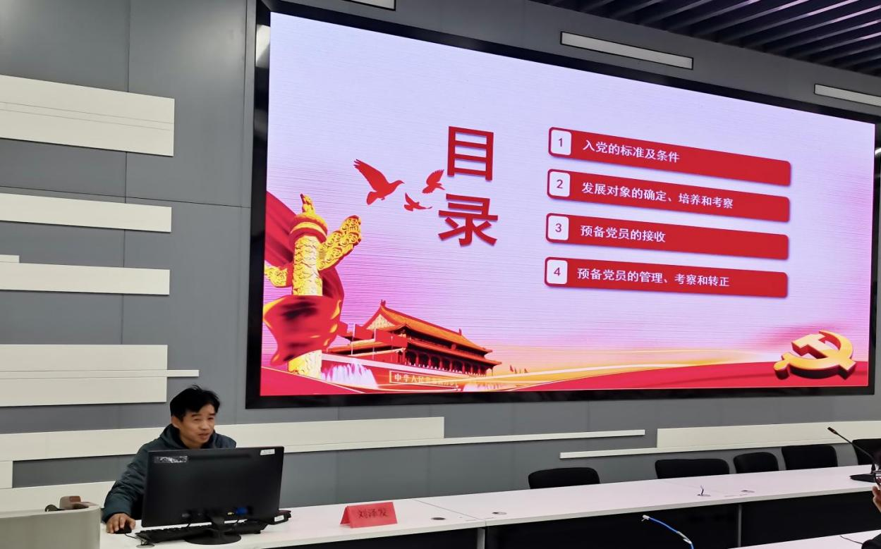 在简短开班仪式结束后,学院党总支副书记刘泽发为学员们上了第一堂党课--《党员的标准和入党程序》。他强调了发展党员的重要意义和成为共产党员的基本条件,具体说明了发展党员工作流程的五个环节。以此要求学员们要认真遵守党员发展流程,从每一个具体环节做起,实事求是,以高标准严格要求自己,早日成为一名合格的共产党员。在未来一周多的时间内,全体学员还将陆续学习《中国共产党章程》各章内容、中国共产党党史基本知识、中国共产党党史学习教育视频等,并完成结业考试。
