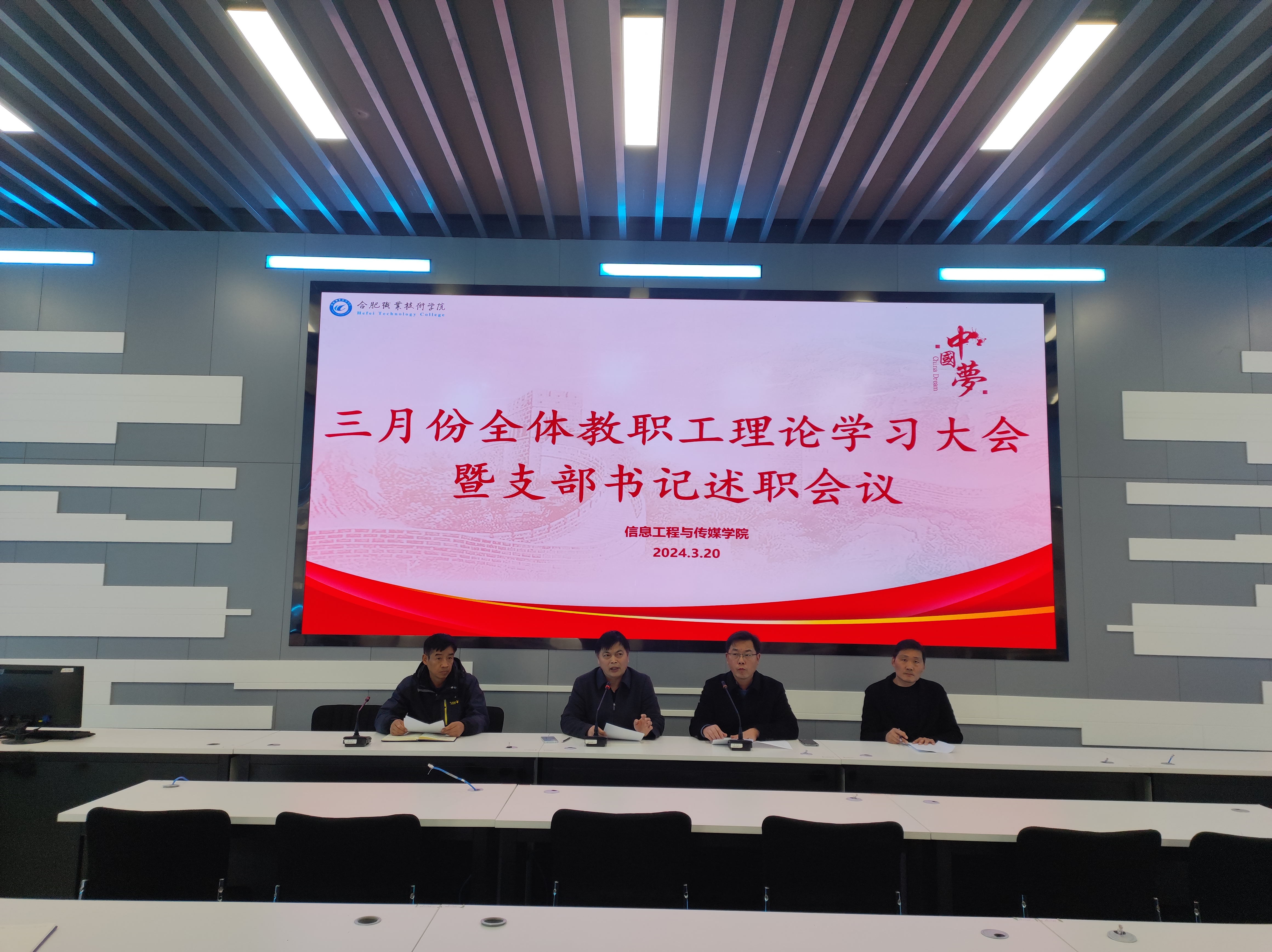 3月20日,国产又色又粗又黄又爽在轨道楼四楼召开全体教职工三月份理论学习暨党支部书记述职大会。会议由学院党总支副书记(主持工作)尹仕果主持。