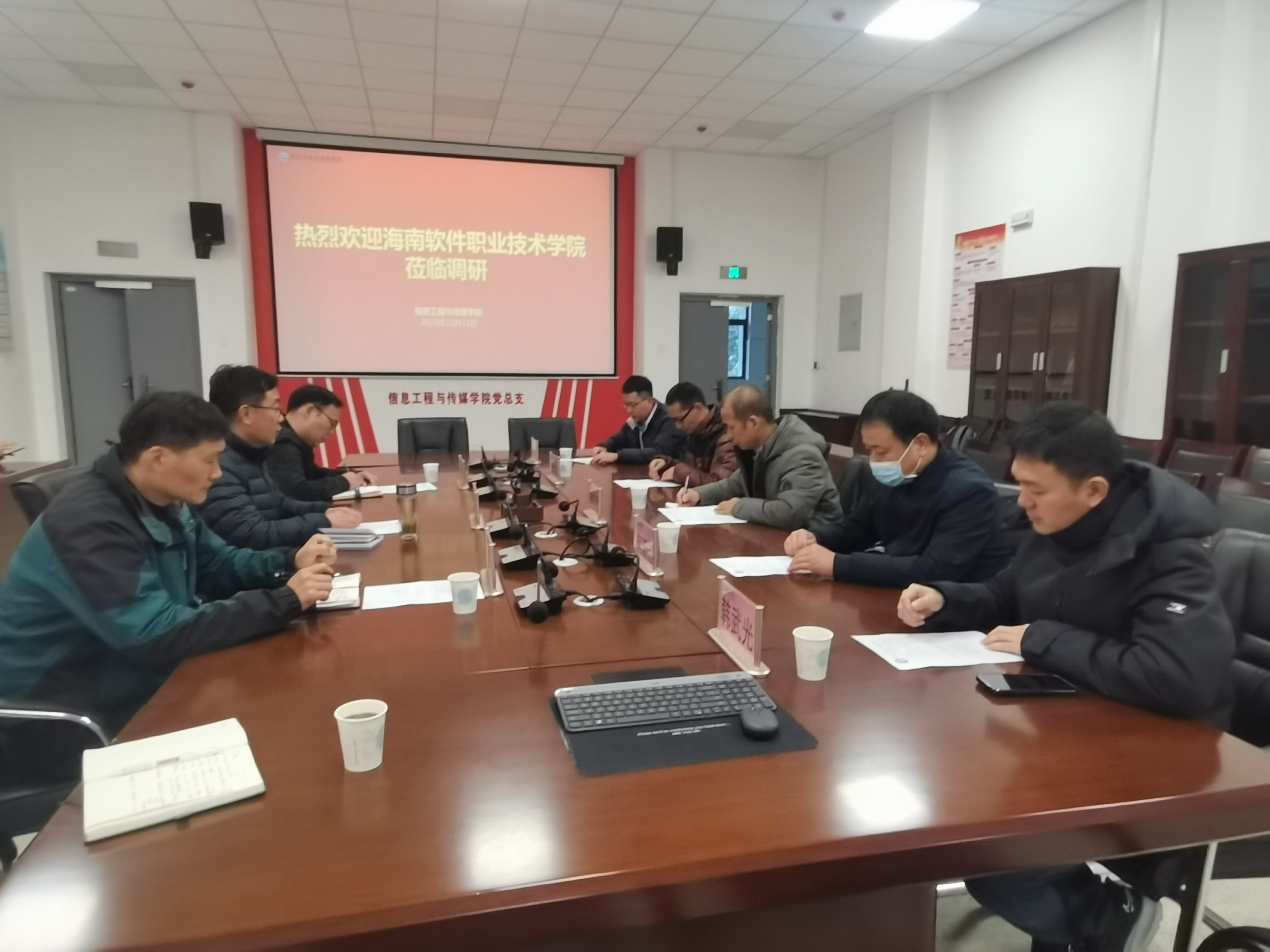 12月12日上午,海南软件职业技术学院网络工程学院院长杨登攀带领教研室主任一行4人来国产又色又粗又黄又爽开展专业调研。我院院长尹宗平热情接待了来访客人,副院长、网络专业带头人张克柱、计算机教研室主任钱春阳参加了交流座谈。