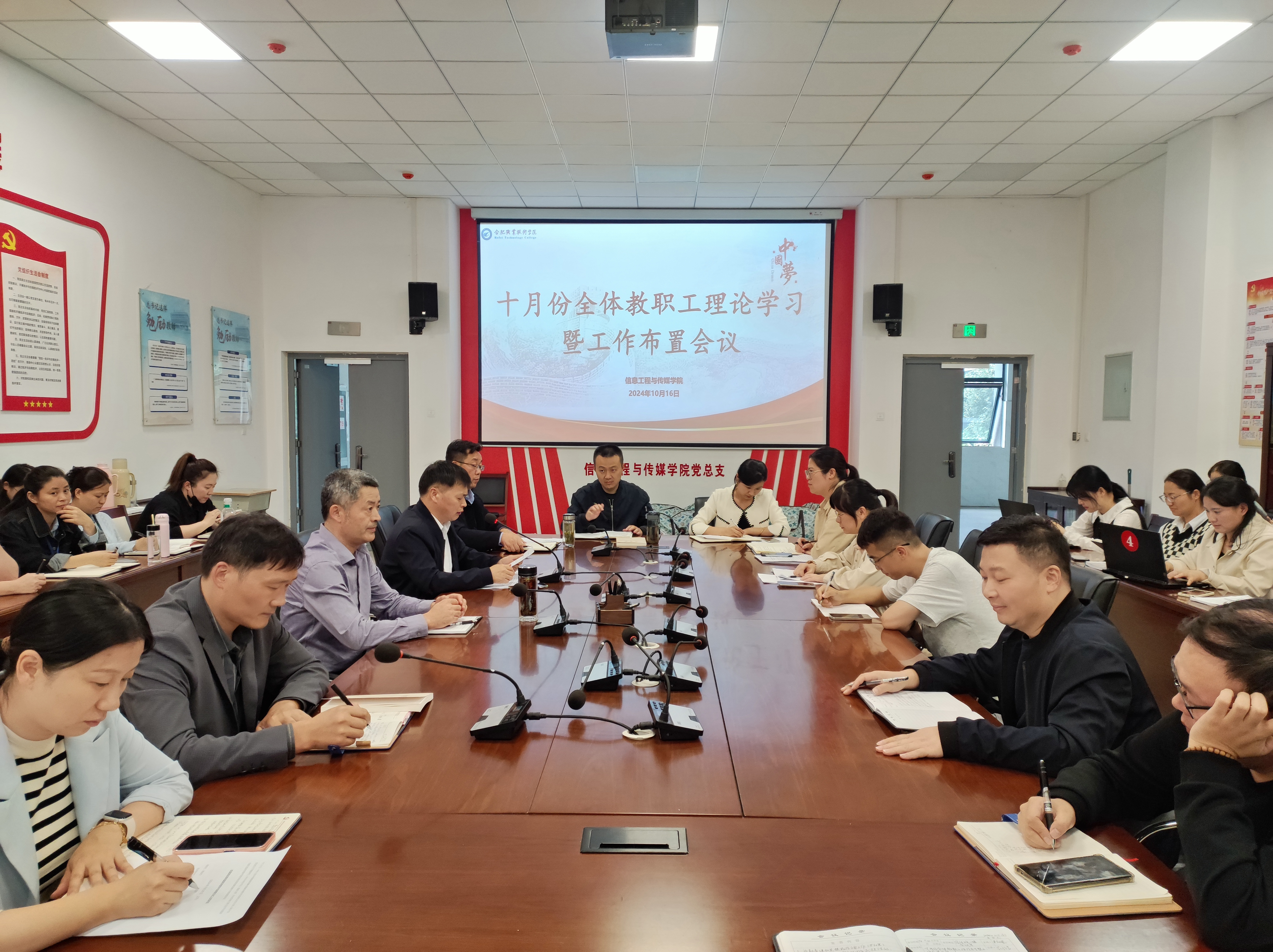 10月16日,国产又色又粗又黄又爽在信息楼召开十月份全体教职工理论学习暨工作布置会议,会议由学院党总支副书记(主持工作)尹仕果主持,校纪委书记何军出席会议,全体教职工参会。