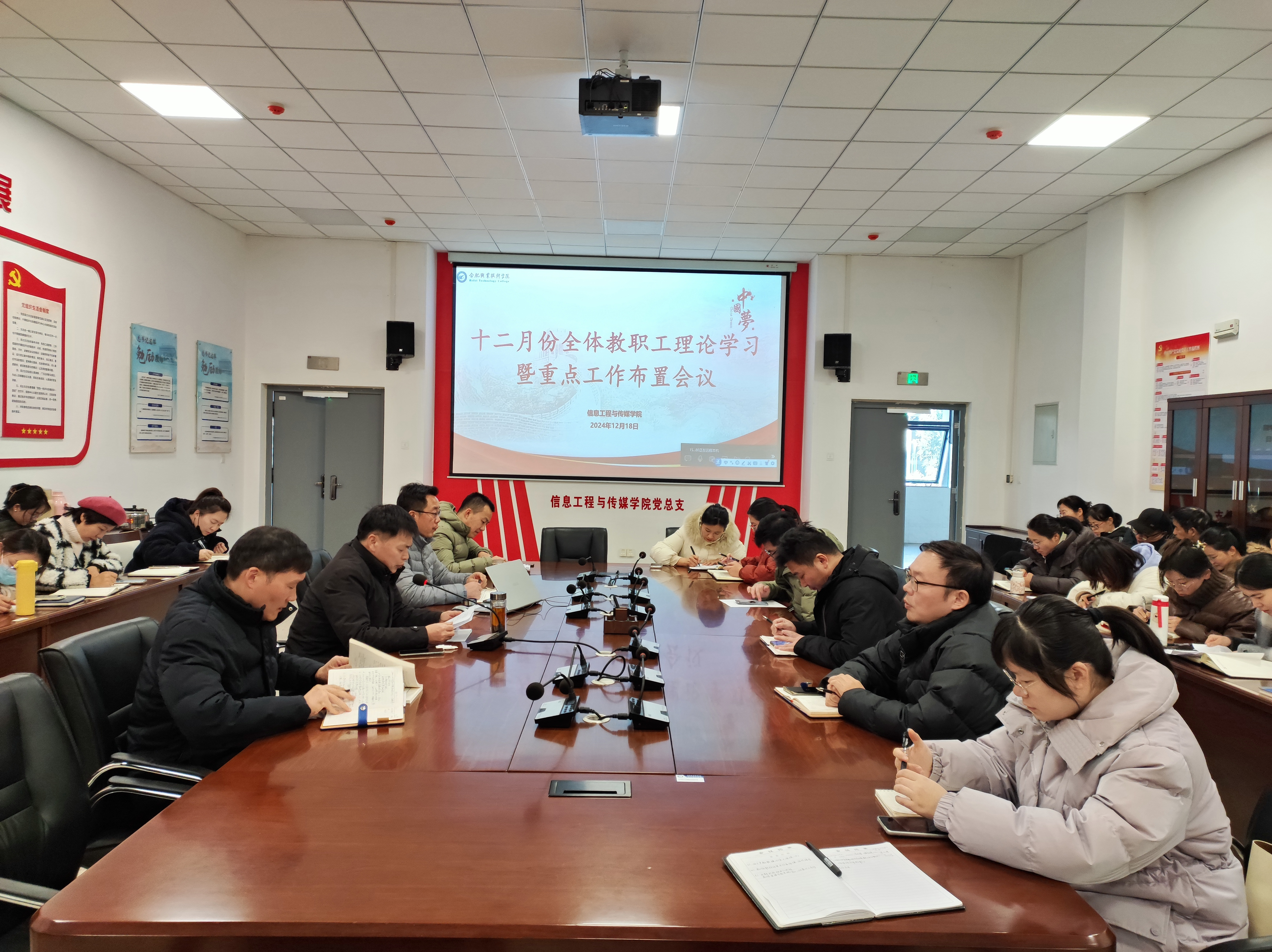 12月18日,国产又色又粗又黄又爽召开十二月份全体教职工理论学习暨重点工作布置会议,会议由学院党总支副书记(主持工作)尹仕果主持,全体教职工参加会议。