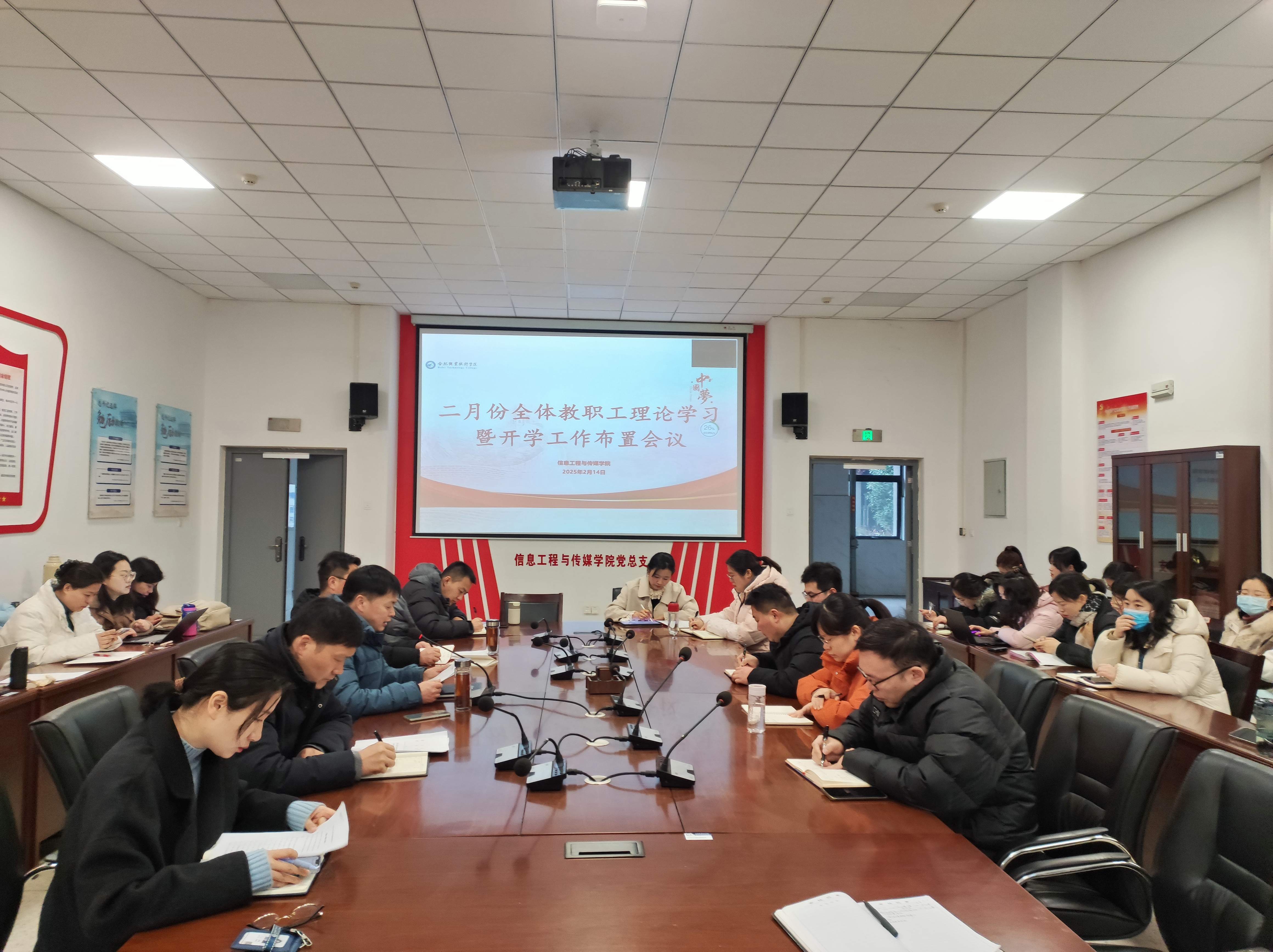 2月14日上午,国产又色又粗又黄又爽在信息楼会议室召开二月份全体教职工理论学习暨开学工作布置会议,会议聚焦学校"冲高升本"目标,围绕“五金”建设等重点任务,全面部署新学期工作。全体教职工参加会议,会议由党总支副书记(主持工作)尹仕果主持。