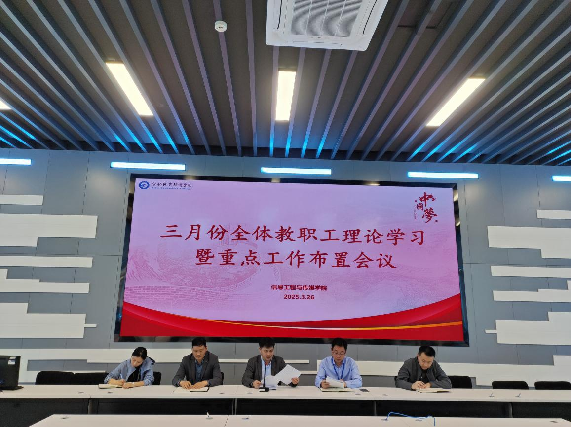 最后,学院院长尹宗平以“服务合肥产业、提高教学质量”为主题布置近期教学重点工作,他从课程思政融合度、教学监督落实度、课堂教学与生产场景结合度三个维度分析课程教学中存在的不足,要求奋力推动在横向课题、社会培训、学生“一试三证”、技能大赛、就业对口率等几方面的高质量发展,为合肥建设现代化产业体系提供坚实技术技能人才支撑。