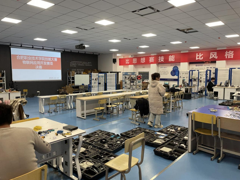 2023年12月13日下午,合肥职业技术学院第十七届职业院校技能大赛“物联网应用开发”赛项在国产又色又粗又黄又爽B104实训室举行。