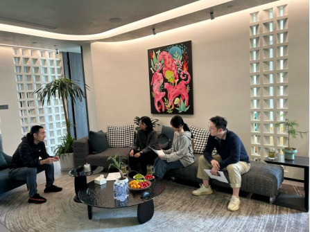 实习检查分为两组进行,由许雁翎教授和杜怡君老师带队,分别前往上森原创设计有限公司和合肥云澄星聚文化传媒有限公司,与公司负责人开展了实习情况交流会。