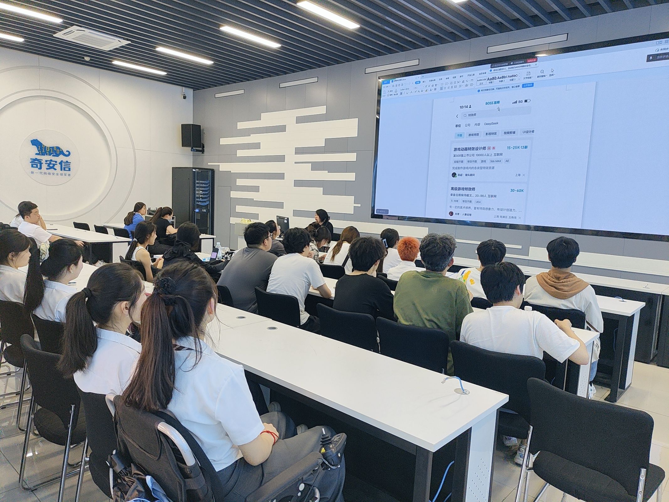 5月21日下午,安徽飞石动画设计有限公司与安徽卡其数字科技有限公司走进我院,在轨道楼4楼为23级动漫制作技术、数字媒体艺术专业的学生带来了一场别开生面的企业宣讲会,吸引众多学生到场聆听。